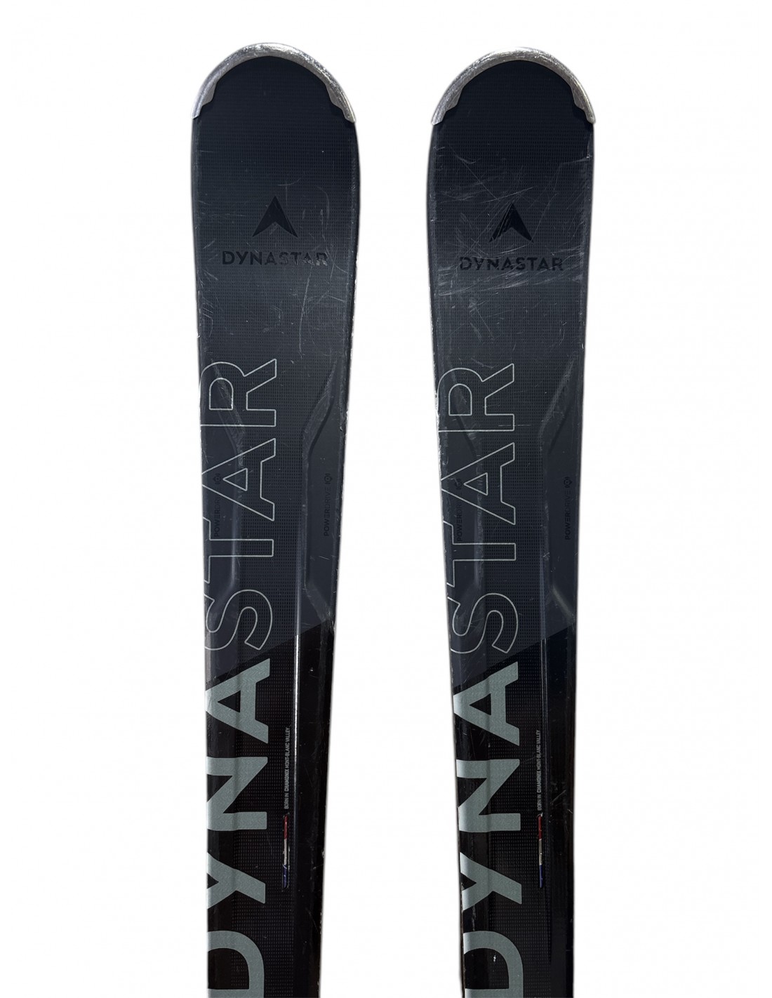 Skis d'occasions issus de parcs de locations, présentant des rayures sur la sérigraphie et parfois de petits pocs légers, fartage et affûtage effectués avant la livraison.