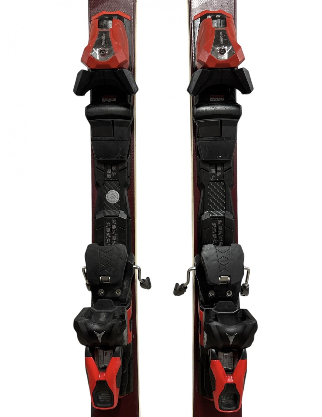 Ski occasion ayant skiés 30 jours sur des essais présentent rayures sur le ski et les fixations