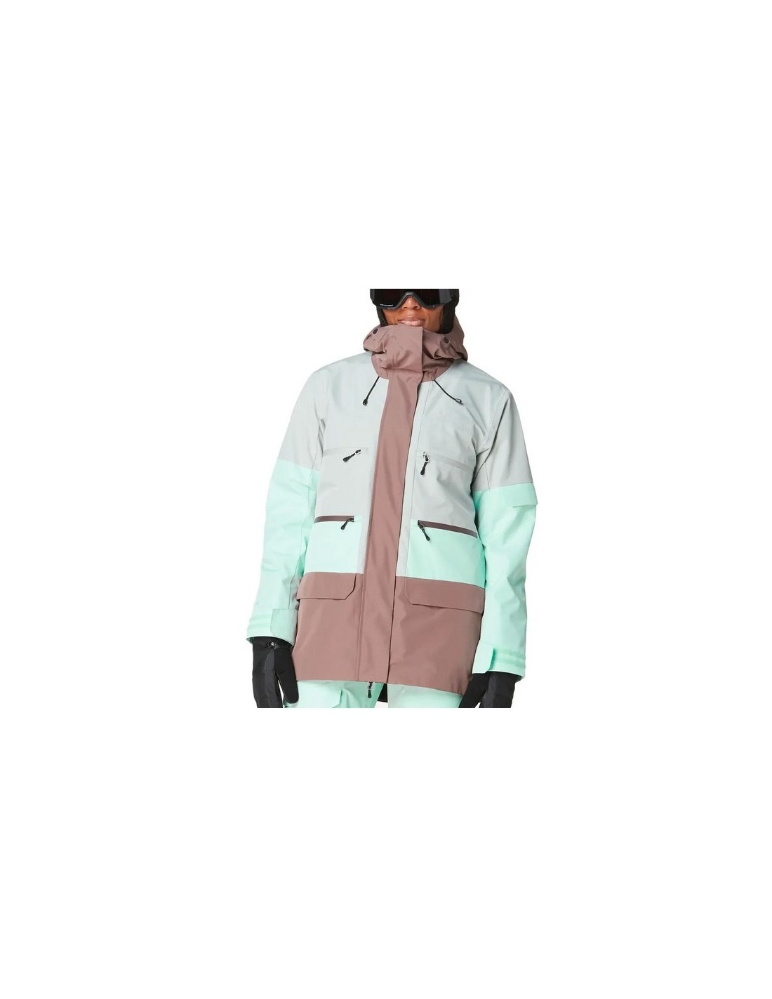 Les coutures sont entièrement cousues collées pour une parfaite étanchéité, les manchons et les zips étanches évitent à l'humidité et à la neige de pénétrer. Pour encore plus de protection et d'ergonomie, elle dispose d'une capuche et de poignets ajustables, une jupe pare-neige amovible et une interface veste-pantalon pour un maintien sans faille. Enfin, très fonctionnelle, cette veste intègre de nombreuses poches, dont une pour le forfait.
