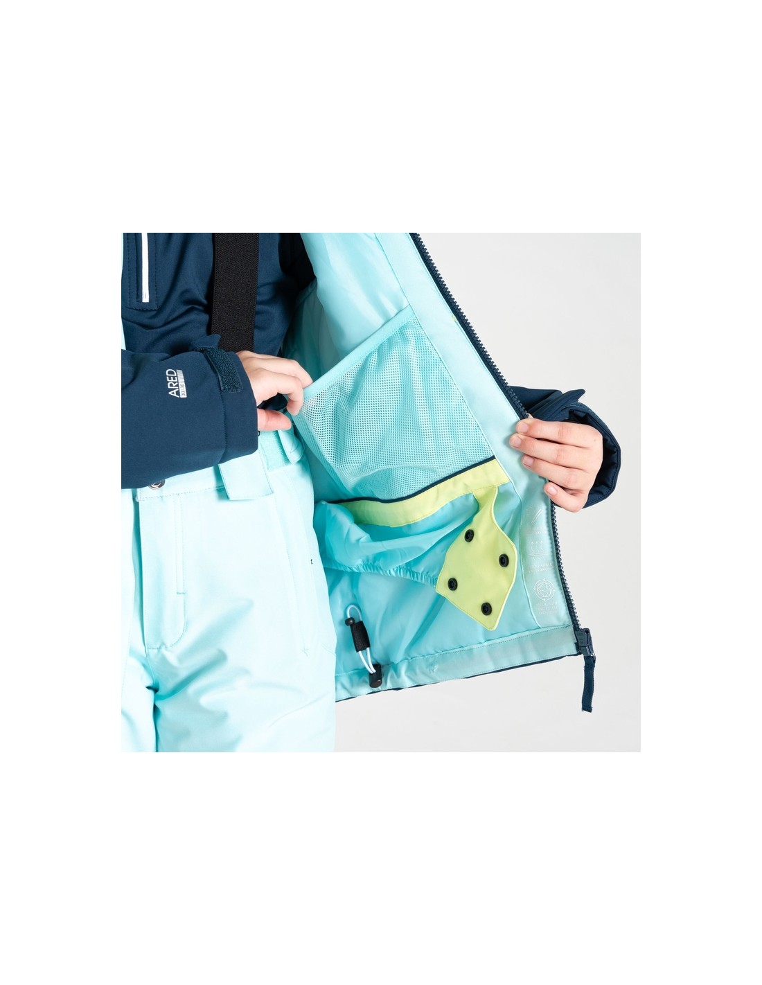 - fonctions ski intégrales (dont poche pour forfait et jupe pare-neige non amovible)