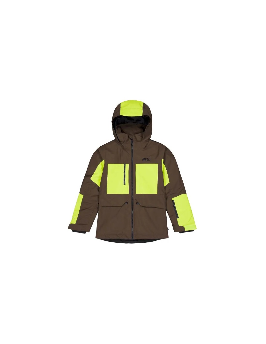 La veste Stony Chicory Coffee Acid Lime pour enfant de la marque Picture Organic Clothing offre une excellente protection sur les pistes de ski ou pour construire un bonhomme de neige.